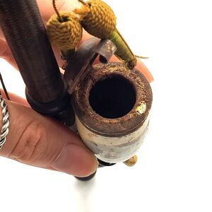 Antique Ceramic Pipe Mid 19th Century Wood Base 11.5 in tall