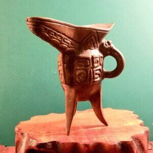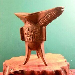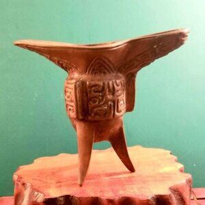 Antique Ceremonial Ritual Bronze Tripod Wine Warming Vessel Chinese Jue Style