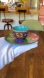 Very good vintage condition. The saucer has a small piece of lost enamel near the rim (on the underside). The cup has a couple tiny chips in enamel, again, near the rim. Otherwise, no chips or damage noted. There is a small bump (manufacturing flaw) inside the cup under the enamel.