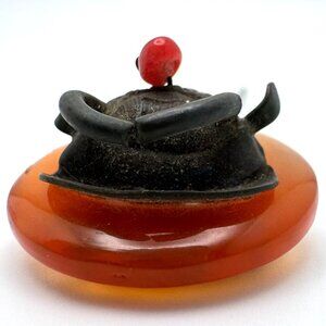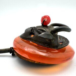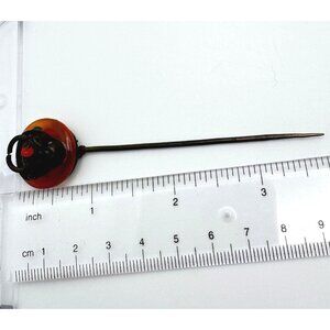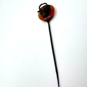 Antique Chinese Hairpin With Ox Motif Carnelian? & Metal Design