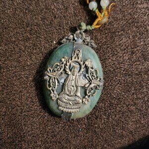 Antique Chinese Jade green Peking glass & fine brass filigree pendant appropriat