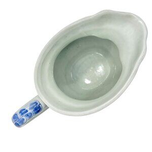 This porcelain pitcher tells tales of serene gardens, its blue floral design evoking tranquil scenes of nature. A timeless piece for decor or collection.