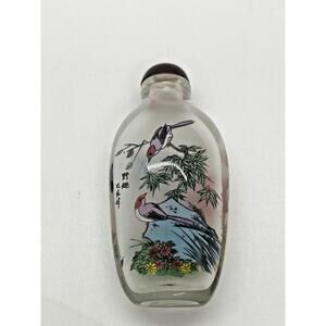 Antique Chinese Snuff Bottle Reverse Glass Painted Birds trees