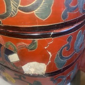 Antique Chinese porcelain lacquered stacking Wedding box, 3 tier. 11”x8”x7”