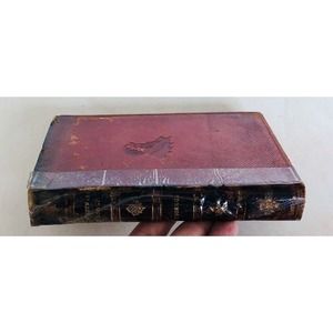 Antique 1869 leather-bound edition of “Christmas Books” by Charles Dickens. Embossed front cover with portrait of the author. Pages have a gilt top edge. There is an original sticker affixed to inside of back cover “From H. S. Nichols, Inc. Booksellers, 17 East 33rd Street, New York City”.