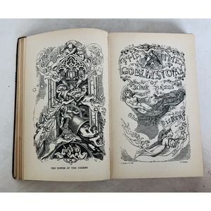 “The Christmas Books — i. e., A Christmas Carol (1843), The Chimes (1844), The Cricket on the Hearth (1845), The Battle of Life (1846), and The Haunted Man (1848) — appeared first in a single volume in 1852. Another edition, with the original plates (both engravings and woodcuts) by the distinguished book and magazine illustrators Edwin Landseer, Daniel Maclise, Clarkson Stanfield, Frank Stone, Richard Doyle, John Leech, and John Tenniel, appeared in 1869.”