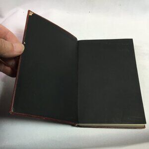This little book is in acceptable condition. It shows lots of exterior wear. The leather cover has been stained on the back, some sun damage on the front, and rubbing on the spine. The interior is in very good condition. A couple of gently creased pages, some yellowing at the edges of the pages, and some pencil writing on the back cover pages. Please review all of the photos for condition. This item is cross posted.