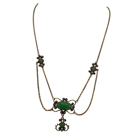 Antique Chrysoprase and Brass Lavalier Necklace (A5688)