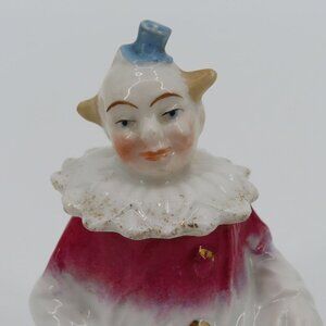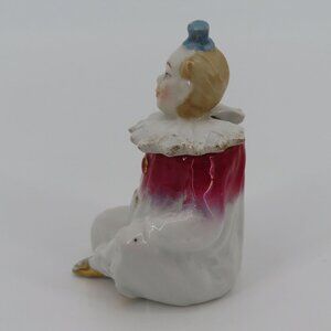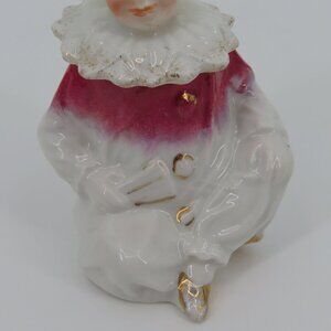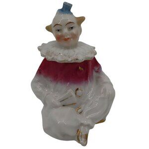 Antique Circus Clown Mustard Pot Condiment Jar Hand Painted Porcelain NO SPOON