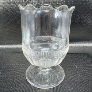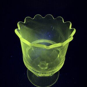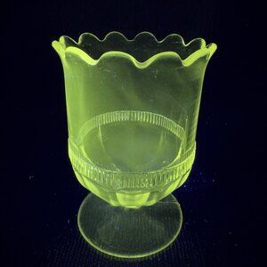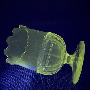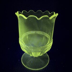 Antique Clear Footed Glass Vase Spooner Manganese 365nm Green UV Glow Glass VTG