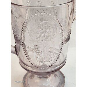 Antique Clear Glass Victorian Style Pitcher With Embossed Greek Mythology Design