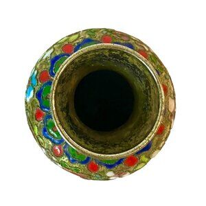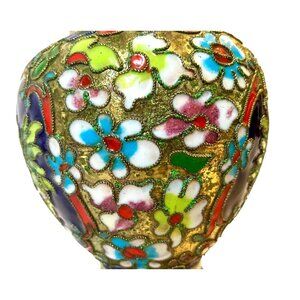 Antique Cloisonne w/ Ornate Enamel Flowers & Gold Gilding Brass Color Vase