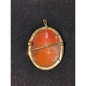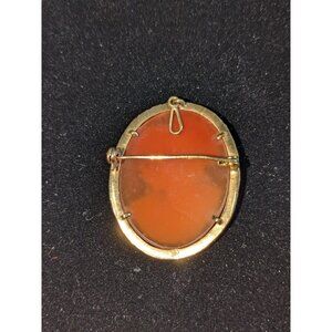 This exquisite antique composite cameo features an American-made design, set in a gold-tone finish, perfect for wearing as a pin or pendant. A timeless piece that complements any collection.