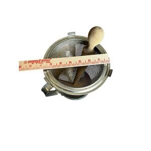 Antique Cone Sieve Food Mill Strainer on Tripod w Wood Pestle Masher some rust