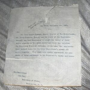 Antique Consul General Of the Netherlands Letter President McKinley Shooting