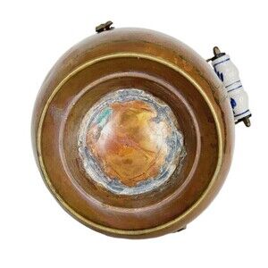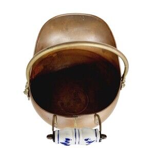 Antique Copper Brass Lion Head Hot Ash Scuttle Bucket Delft Porcelain Handle