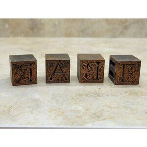 Antique Copper Capital Letter B A R E Printing Block Set of 4 Blocks Art Nouveau