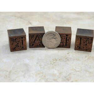 Antique Copper Capital Letters B A R E Printing Block Set of 4 Blocks Art Nouveau
