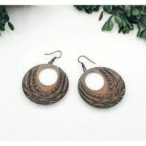 Antique Copper & Turquoise Patina Dangle Earrings With Ornate Circular Design