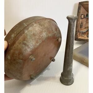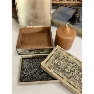 Antique Cottage Trinket Decor Lot: Copper Metal Candles Diorama Nozzle Box Pins