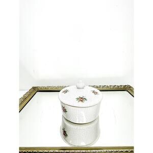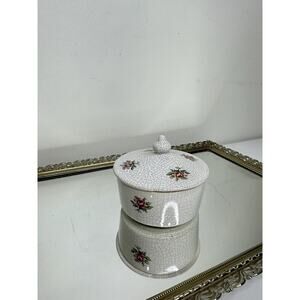 Antique Crackle Ceramic lidded Dish with Rose Floral Design