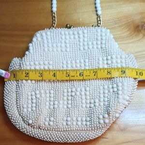 This elegant cream beaded bag is perfect for any occasion. Its intricate design adds a touch of sophistication to your outfit. This is a totally antique vintage bag In good vintage condition