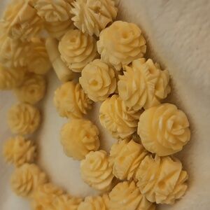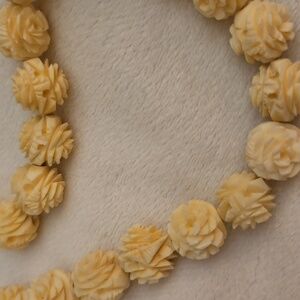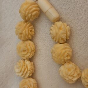 Antique Cream Carved Rose Celluloid Beaded Bridal Necklace