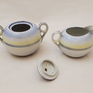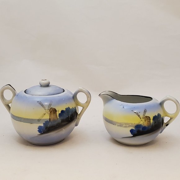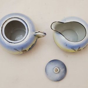 Antique Cream and Sugar Set with Dutch Windmill Scene