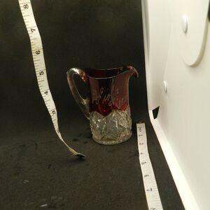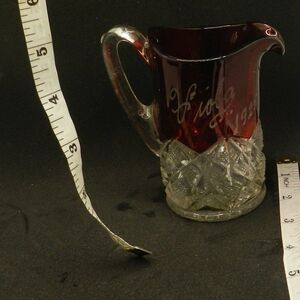 This antique is a glass pitcher charming addition to any collection. Made during the 1925, features adorable glass pitcher standing at 5" tall. Perfect for any time of year, this will bring joy to collectors of all ages.