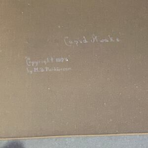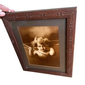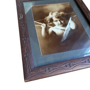 Antique Cupid Awake 1897 Black & White Print M. B. Parkinson carved wood frame