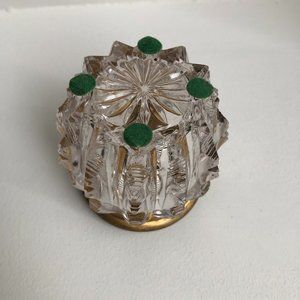 Antique Cut Crystal Jewelry Trinket Jar with Removable Gold Lid