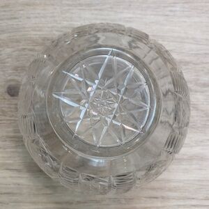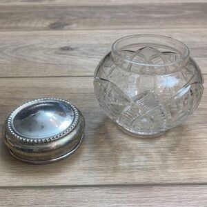 Stunning small crystal cut glass lidded apothecary jar. The silver lid is stamped B&W. There are some very minor chips around the rim of the glass as pictured, not visible when closed. Overall excellent vintage condition and a beautiful glam vanity accessory.