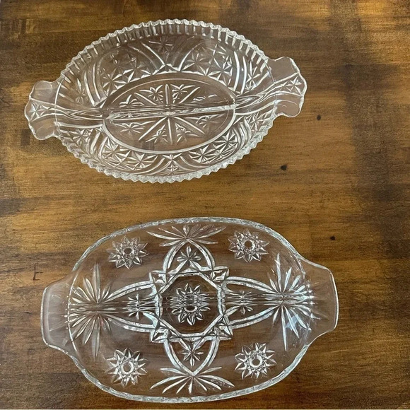 Antique Cut Glass Divided Relish/ Candy Trays Set of 2