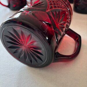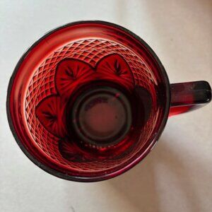 Antique Ruby Red Cut Glass Mugs, Vintage Cristal D'Arcque Luminarc France purchased from Bloomingdales NY 2000. Set of 12. Never used. Nice heavier weight.