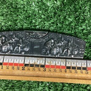 Beautiful vintage piece. Plastic comb with a small silver embellishment on the top middle which fits into a silver case of the same size. The silver case has a scenery of what looks like a pub. Made in Denmark. Silverplate. Great collectable, in good used condition, I didn't see any breaks on the comb.