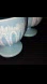 Vintage "Drippy Celadon" technique Blue and White Dessert Cups Ice Cream Sorbet Pudding Bowls Footed Glazed RARE