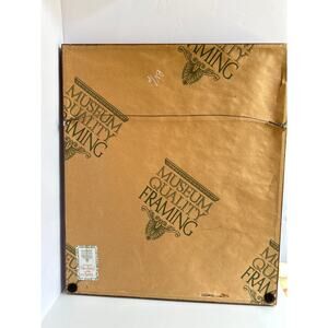 Professionally matted in textured sage green with wood frames and museum-quality framing labels on back. One frame shows a small tear in the backing paper only; artwork and matting are unaffected.