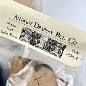 Antique Drapery Rod Co. Monaco Finials English Walnut Pair FIEMOW New/Old Stock