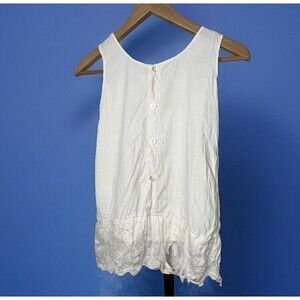Handmade Antique Dress Slip Sleeveless Tank Crochet Ruffle Hem Buttons Cream