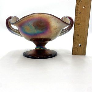 Antique Dugan Carnival Glass Amethyst Question Marks 2 Handles Bonbon Dish 1900c