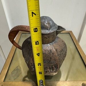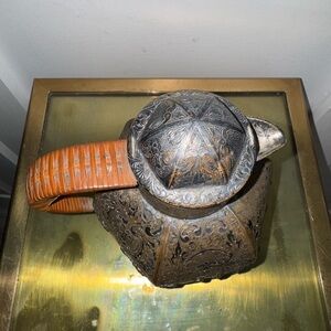 Antique E G Webster Silver Plate Copper Repousse Engraved Teapot Rattan Handle
