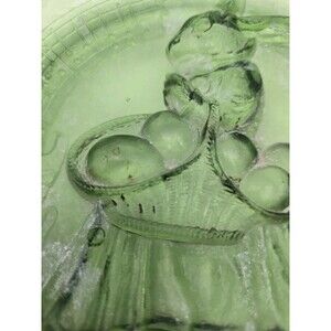Antique EAPG Green Glass Plate Or Dish "An Easter Lay" Rabbit Eggs Basket 6 Inch
