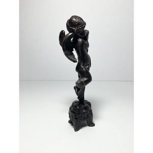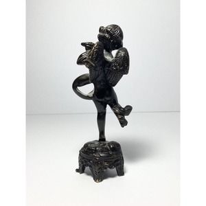 Antique Early 1900’s French Cherub Putti Playing Flute Bronze Statuette 5 3/4”.
