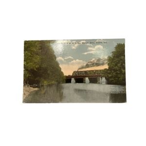 Antique Early 1900s Litho Ephemera Postcard LS & MS RR Train Transportation Bridge over Elkhart River Goshen IN Some wear and discoloration from age. Edge wear. See all images