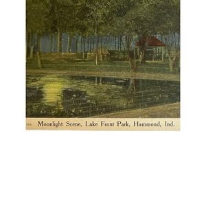 Antique Early 1900s Litho Ephemera Postcard Moonlight scene Lake Front Hammond IN Curt Teich co. Made in USA Some wear and discoloration from age. Edge wear. See all images