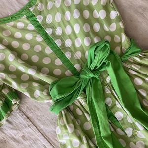 antique early 20th century polka dot cotton bathing costume/playsuit with top, bloomers and hat. Top closes up back with hook and eyes. Waist ties cinch waist. Bloomers have elastic waistband and leg openings.