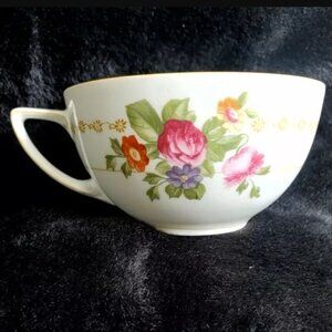 Antique Early 1900s ROSENTHAL SELB BAVARIA Floral Tea Cup & Saucer Set Gold Trim