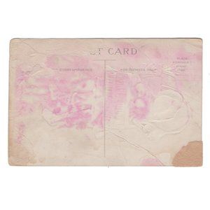 Creasing, pink staining on the back, areas of the back have peeled off. This does not affect the front artwork.