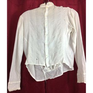Antique Edwardian Cotton Eyelet High Neck Bodice Fancy Front Pigeon Bust 1900 .