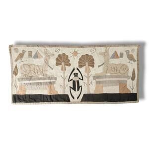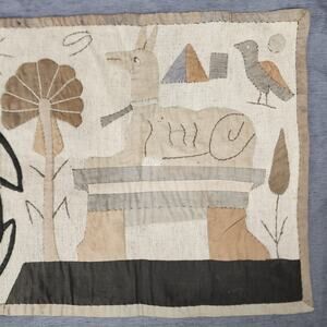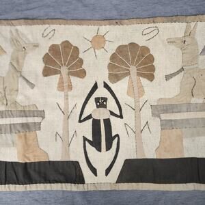 Antique Egyptian Revival Wall Quilt 1920s Hand Sewn Folk Art Anubis Dog Scarab